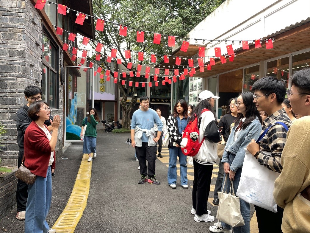参观结束后,支部党员前往孚生文创空间进行进一步的交流活动。途经新华日报北碚发行站旧址和北碚川剧团旧址等地,苏缇为支部党员介绍了北碚的历史文化及抗战时期北碚民众顽强斗争、不忘国耻的爱国精神。北碚是重庆抗战文化的载体,因承载民族精神而独特,支部党员无不赞叹其历史文化底蕴的深厚。