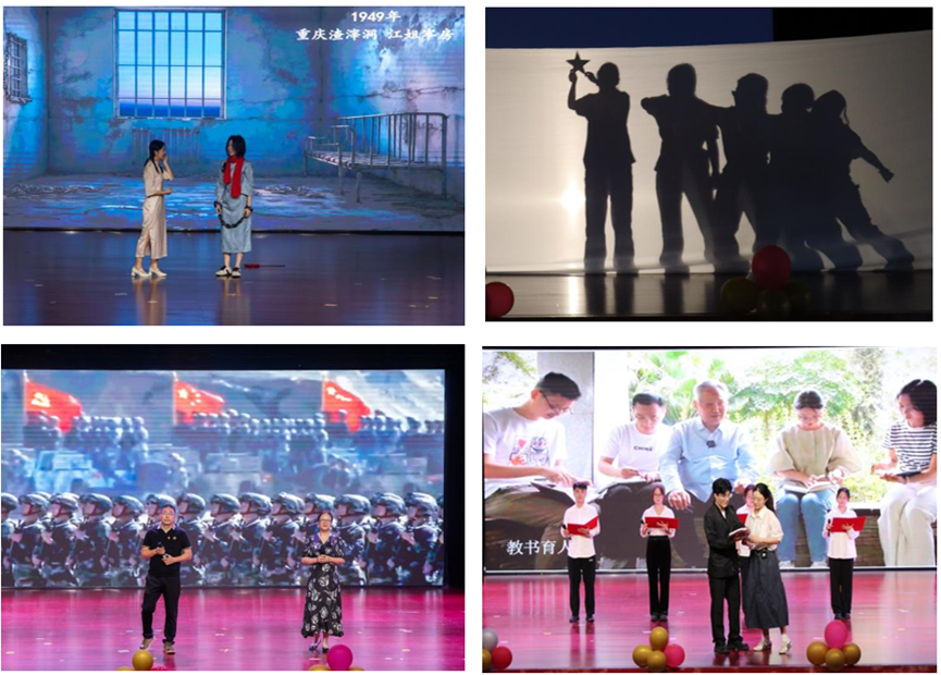 心理学部教师党员代表刘衍玲、杨东合唱《为了谁》,向最可爱的人致敬。学硕二支部与博士二支部合演情景朗诵节目《扎根沃土,心系家国》,通过对黄希庭教授烽火中求学、扎根西部、奉献祖国的经历再现,让在场师生感受到了黄先生对心理学事业的毕生追求与无私奉献。学硕六支部带来心理剧《赵一曼:家与国的抉择》,运用心理学概念“本我、自我、超我”解析英雄的崇高抉择。专硕三支部借情景剧《红梅魂,守初心》,演绎江姐在狱中的内心世界,致敬她如红梅般坚贞不屈的信仰。