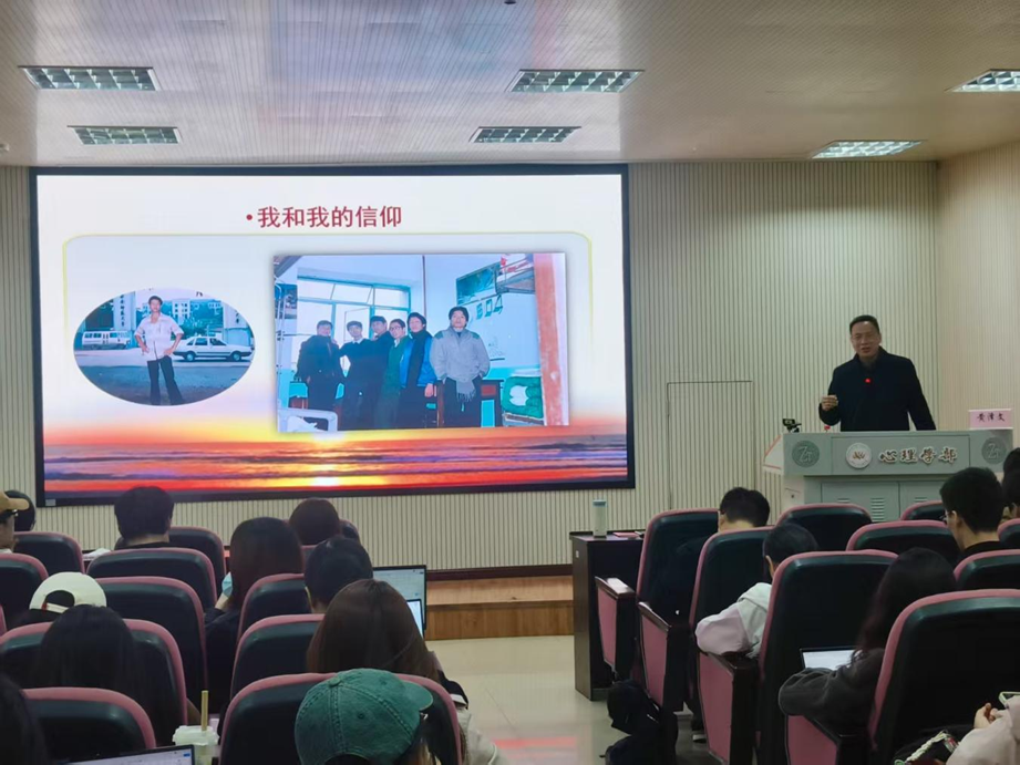 11月9日下午,心理学部党委书记黄泽文带来《传递信仰火炬,点亮心灵之光》一课。他紧密结合心理学专业特点,阐述了信仰对于个人成长、对于共产党员的特殊重要性,强调坚定的理想信念是共产党人的精神支柱和政治灵魂。课程启发学员们认识到,个人的专业追求与党的“全心全意为人民服务”根本宗旨内在统一,应将个人热忱升华为为党和人民事业奋斗终生的坚定信念。