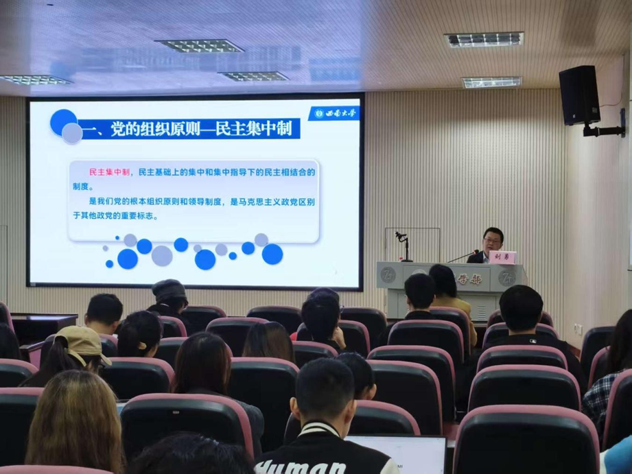 11月16日下午,数学与统计学院党委书记唐宇详细讲解了《中国共产党党员条件及入党程序》。他明确了党员的基本条件、义务和权利,系统梳理了发展党员工作的规范流程,使学员们清晰认识到党员不是特殊身份,而是责任的代名词,没有特权,只有更多的奉献与担当。